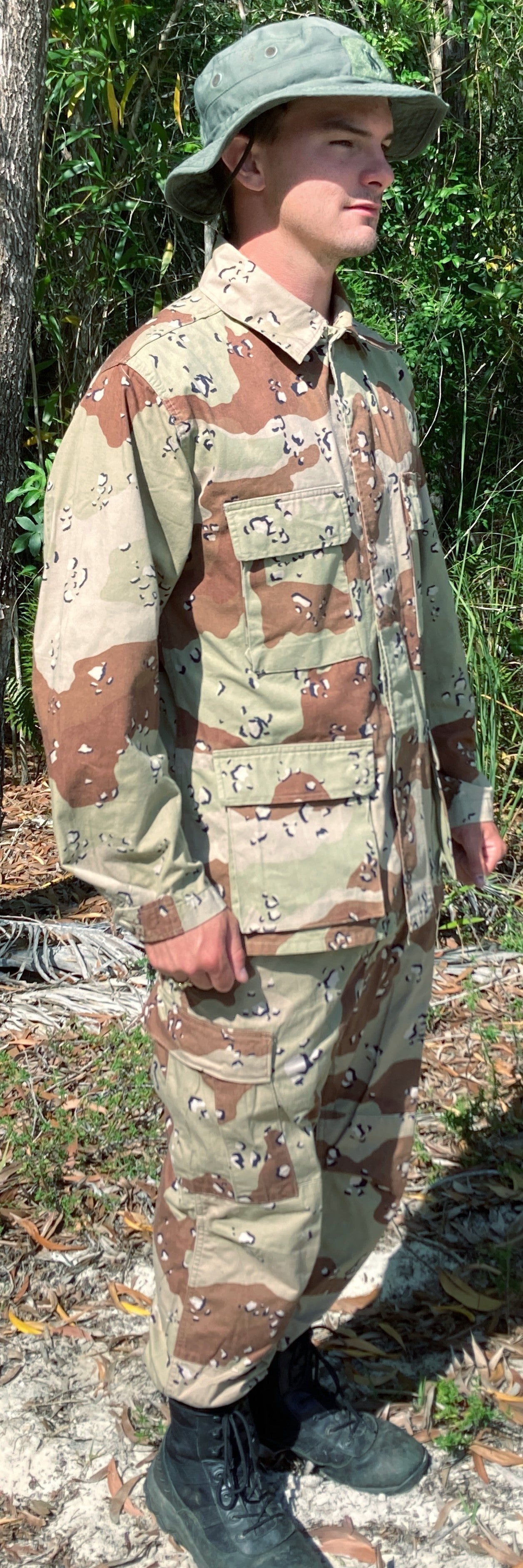 Classic US Military Desert Camo Pattern, Six color desert BDU's are as or more iconic than m81 woodland it served besides. From 1981 to 1995 Six color has seen the Mojave desert to Gulf cementing itself in history during the First Iraq war.